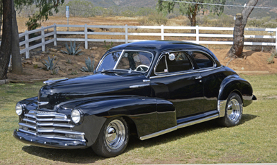 1948 Chevrolet Coupe. Black Lacquer, 350 crate motor with 27k miles, 350 turbo trans, beautiful headers, aluminum radiator, A/C, front disk brakes, original drivers manual, set up to be a very nice driving classic that gets down the road swiftly and stops as it should. Show and drive est. est. vin # FAA662510